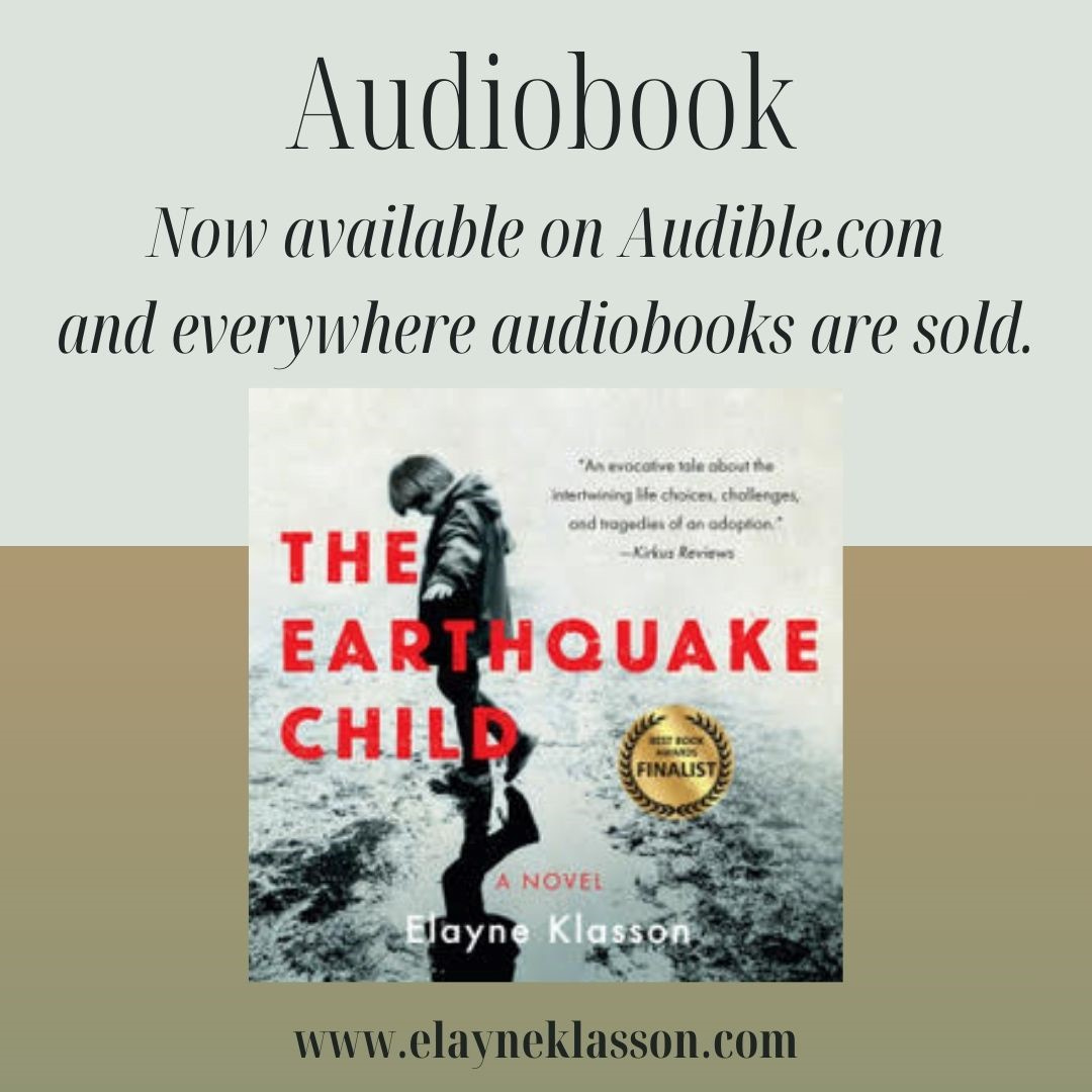 I have several big news items to report on my late-in-life publishing career. First of all, after long last, the audiobook for The Earthquake Child is now widely available on all platforms, including Audible/Amazon, Google Play, Kobo, NOOK, etc.