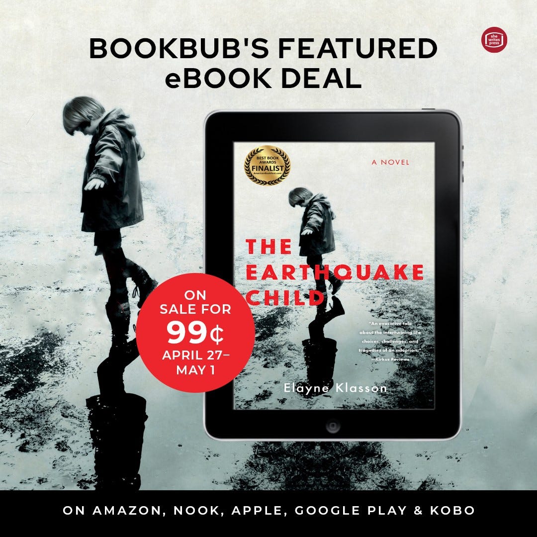 Next, I wanted to announce that for five days only, Saturday, April 27th until Wednesday, May 1st, the ebook version of The Earthquake Child, will be priced at $.99. A deal! This is made possible by my publisher SheWritesPress, who obtained an international deal for me through BookBub. It means that readers all around the globe who subscribe to BookBub will receive this special offer which is also being matched by my publisher for these five days only. So, this is a good time to order the ebook of The Earthquake Child and get this special price.